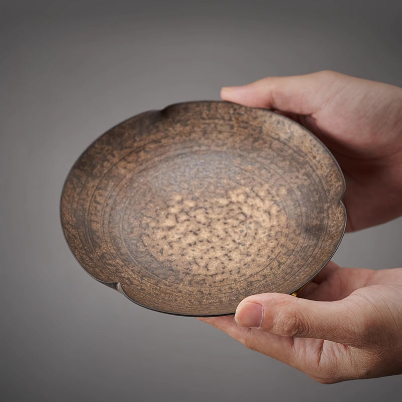 Black pottery tea holder, metal glaze, hand-fired saucer, teapot, cup tray, tea ceremony accessories