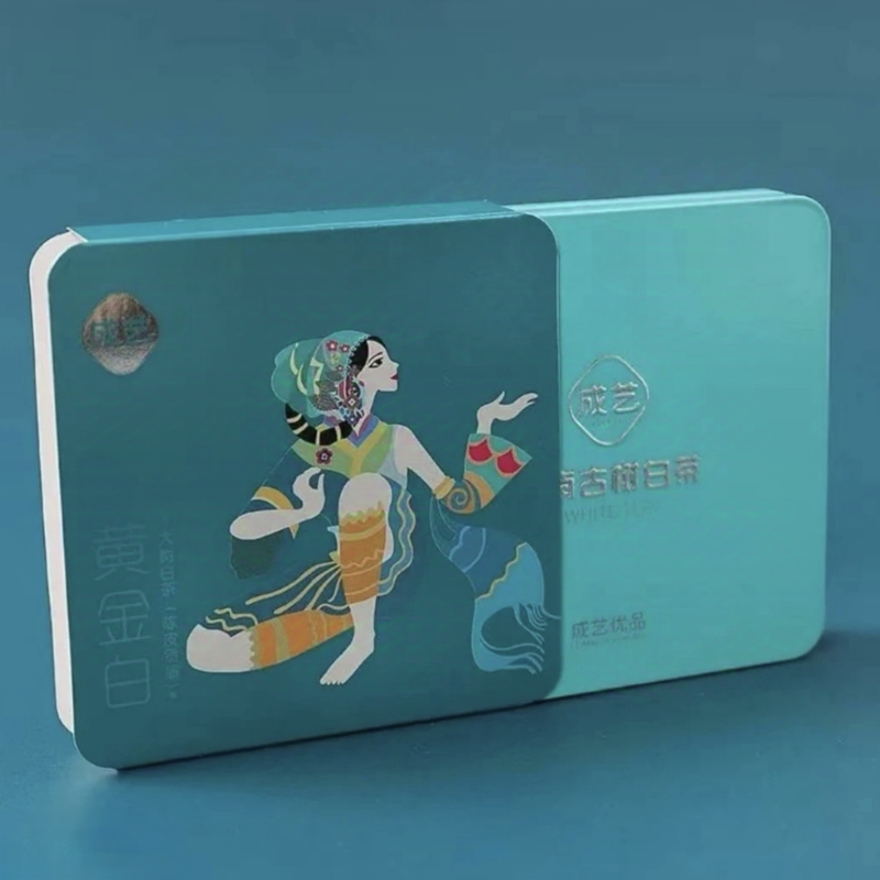 Indulge in the finest quality tea with Chengyi Golden White Tangerine Peel Gongmei. Savor the unique blend of big leaf white tea from 21 degrees north, accompanied by the sweet taste of tangerine peel. Presented in a lavish iron box, this 45g package offers a luxurious tea experience.